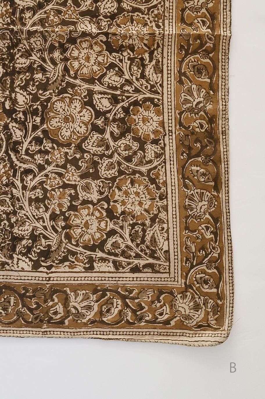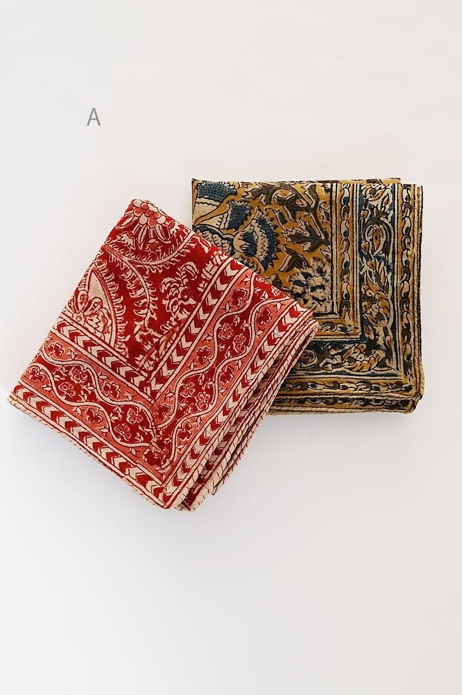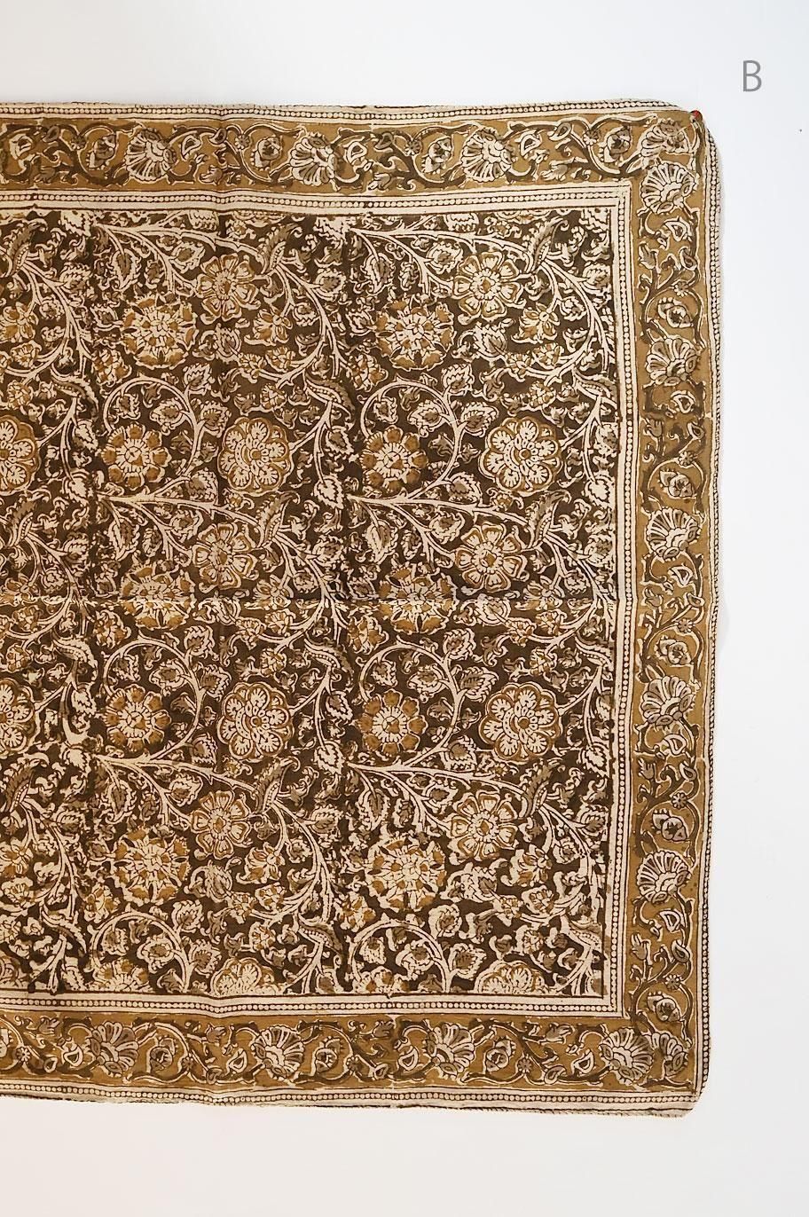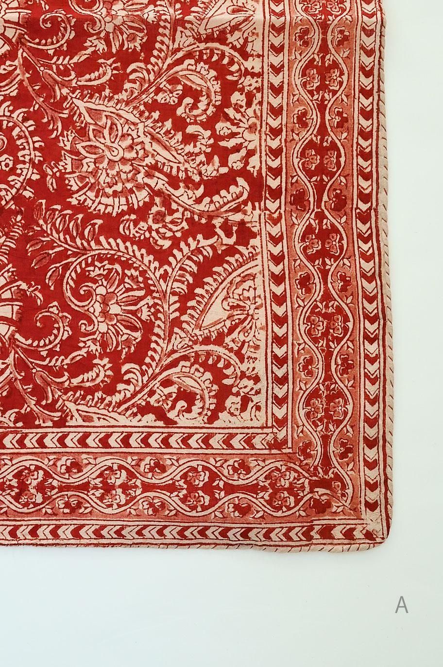 4辺の隅を1周手縫いでまつった仕様のブロックプリントハンカチ。