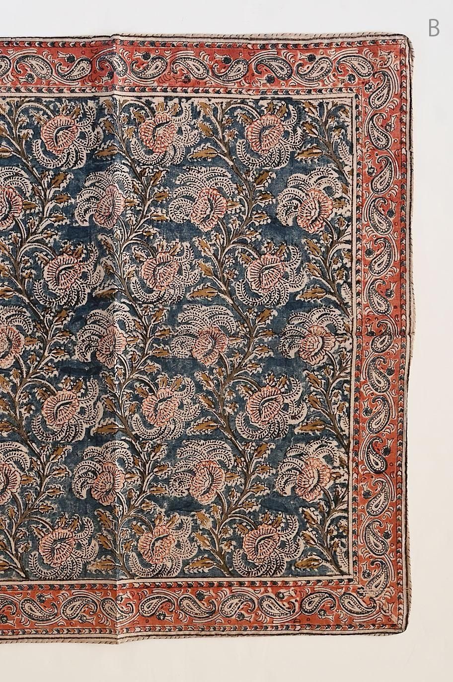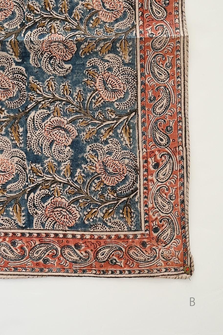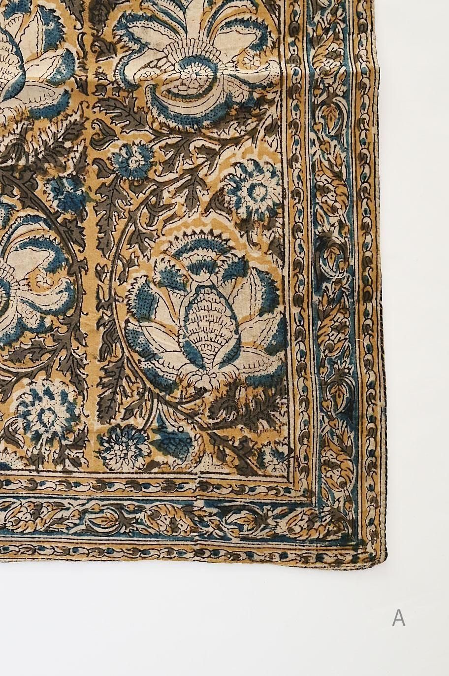 4辺の隅を1周手縫いでまつった仕様のブロックプリントハンカチ。