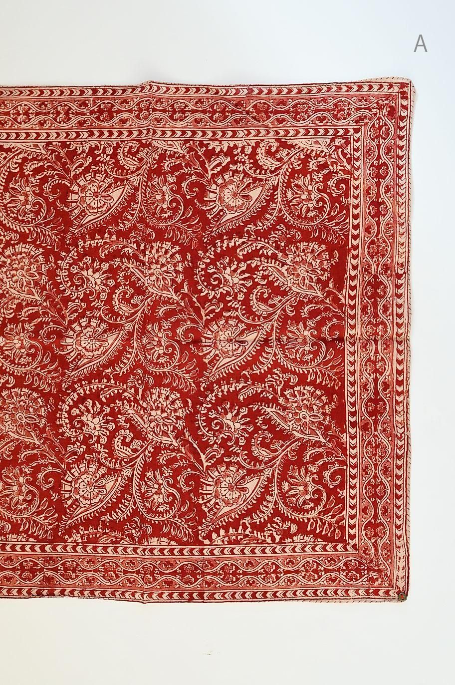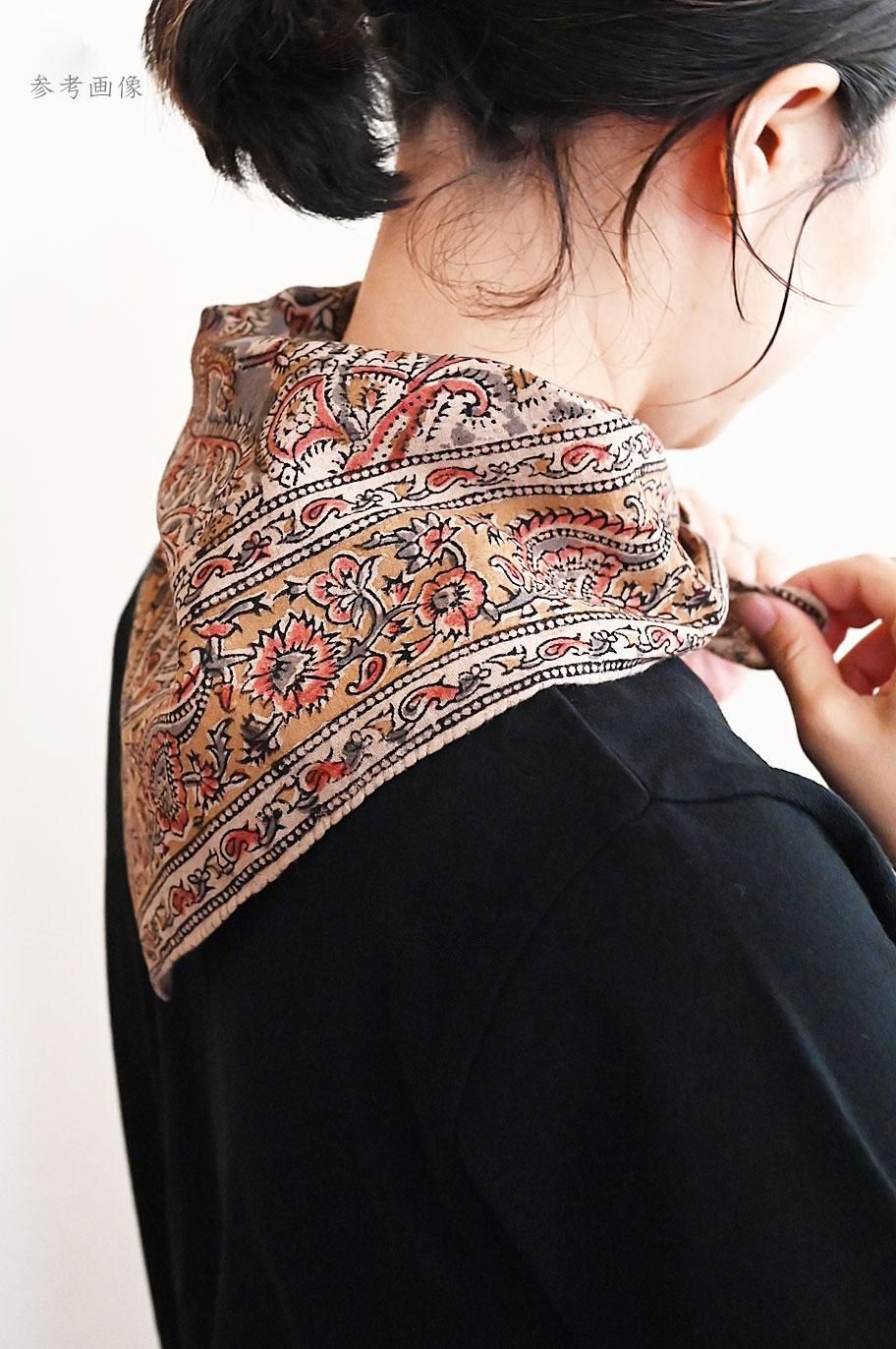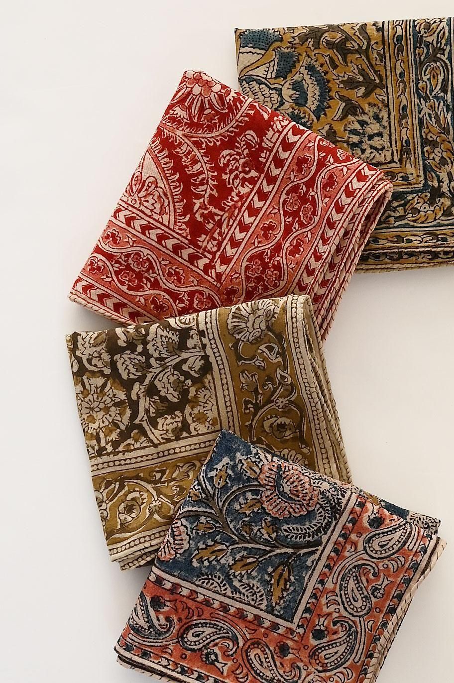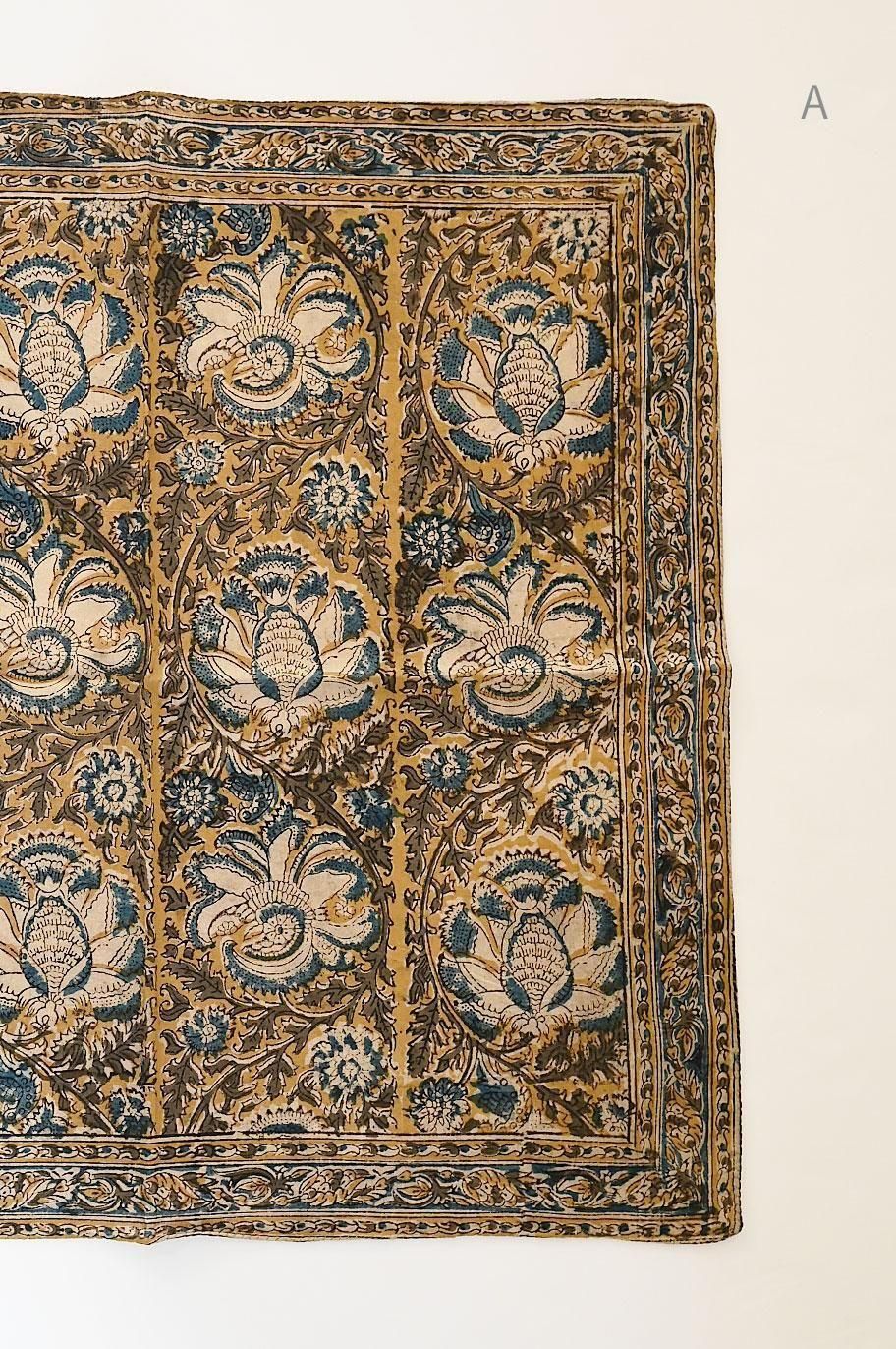 4辺の隅を1周手縫いでまつった仕様のブロックプリントハンカチ。