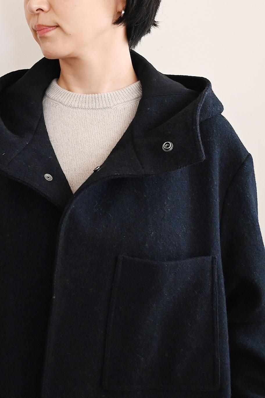 飽きのこないスタイルが魅力のソフトメルトンコート。