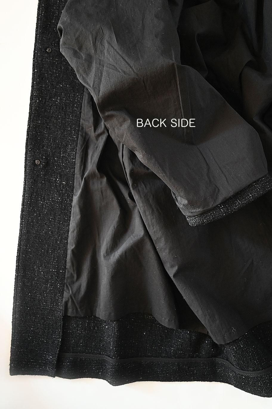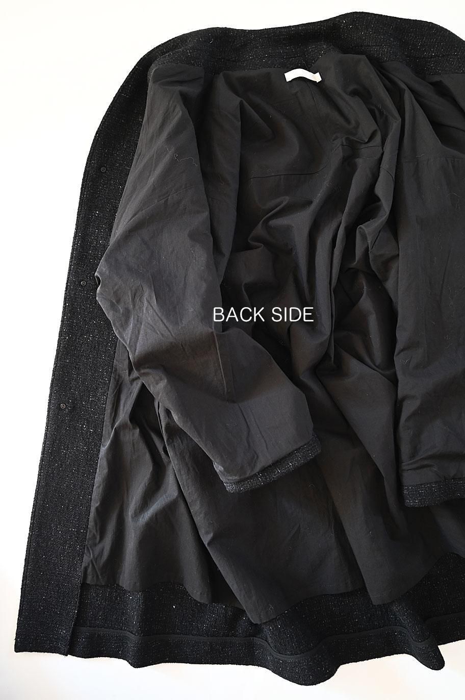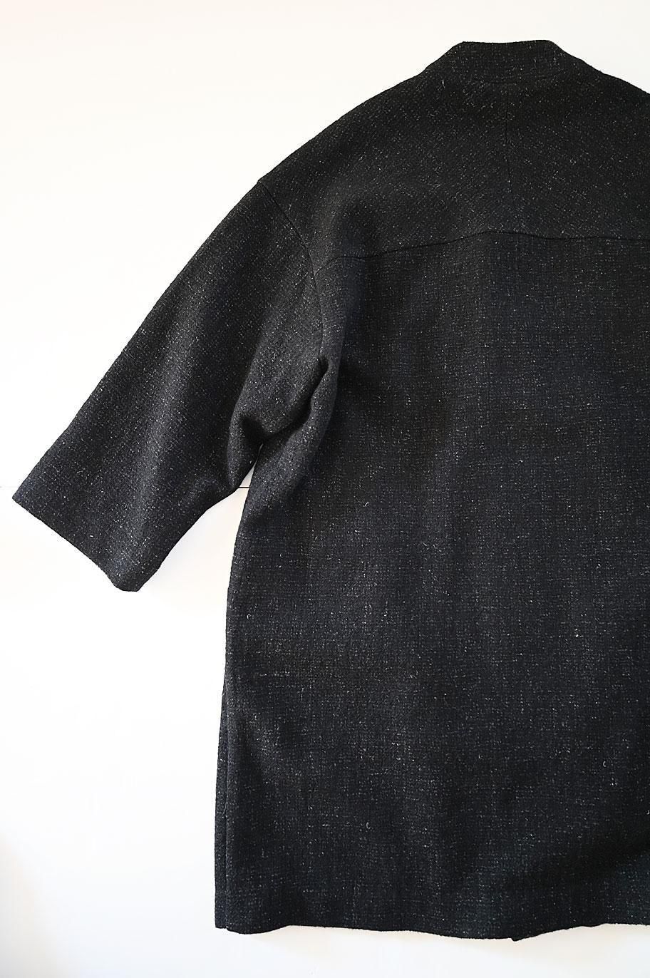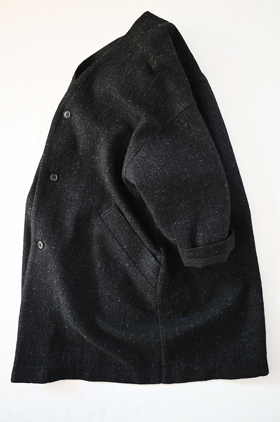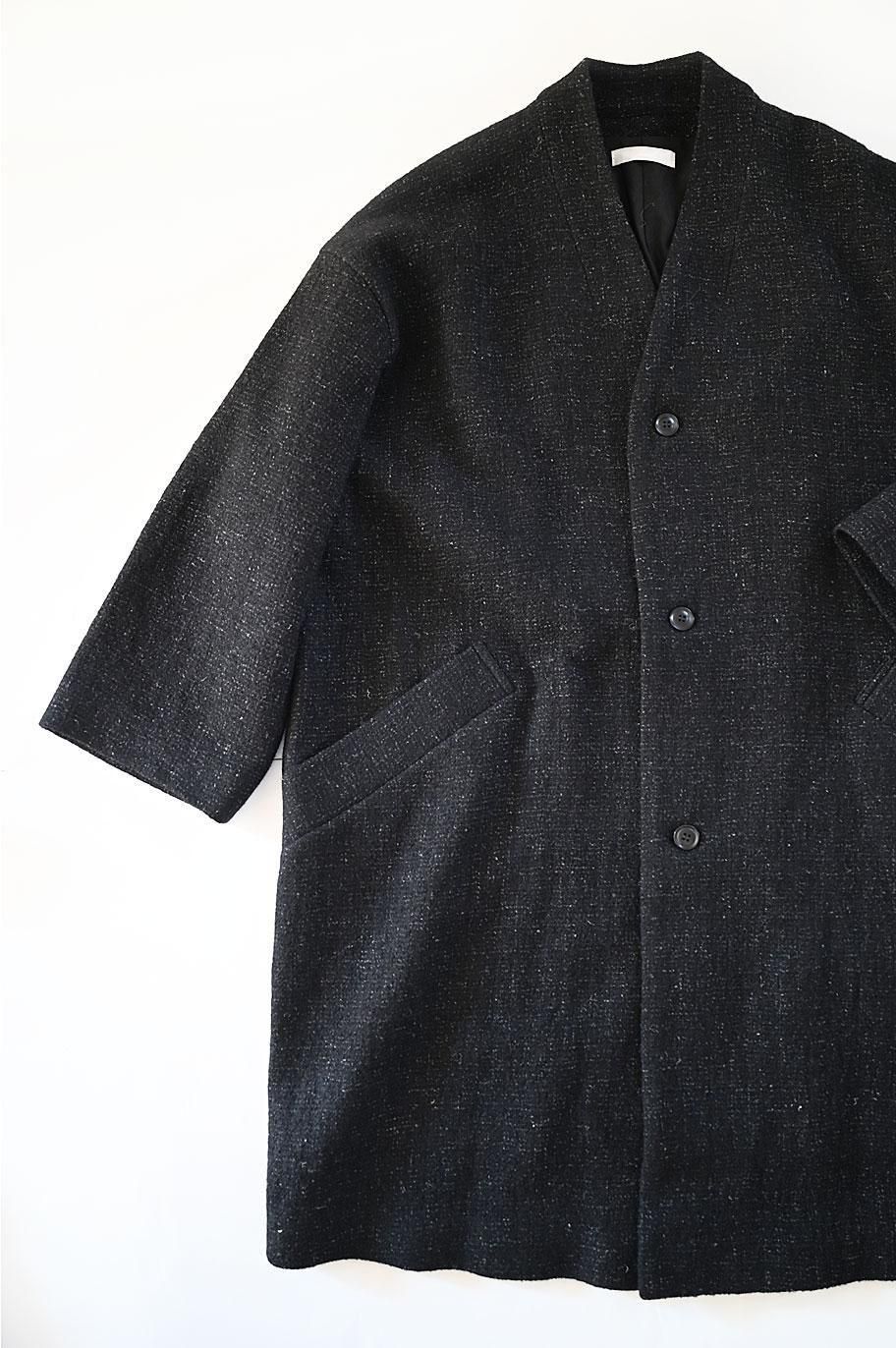 新作の ウールリネン綾織ノーカラーコート